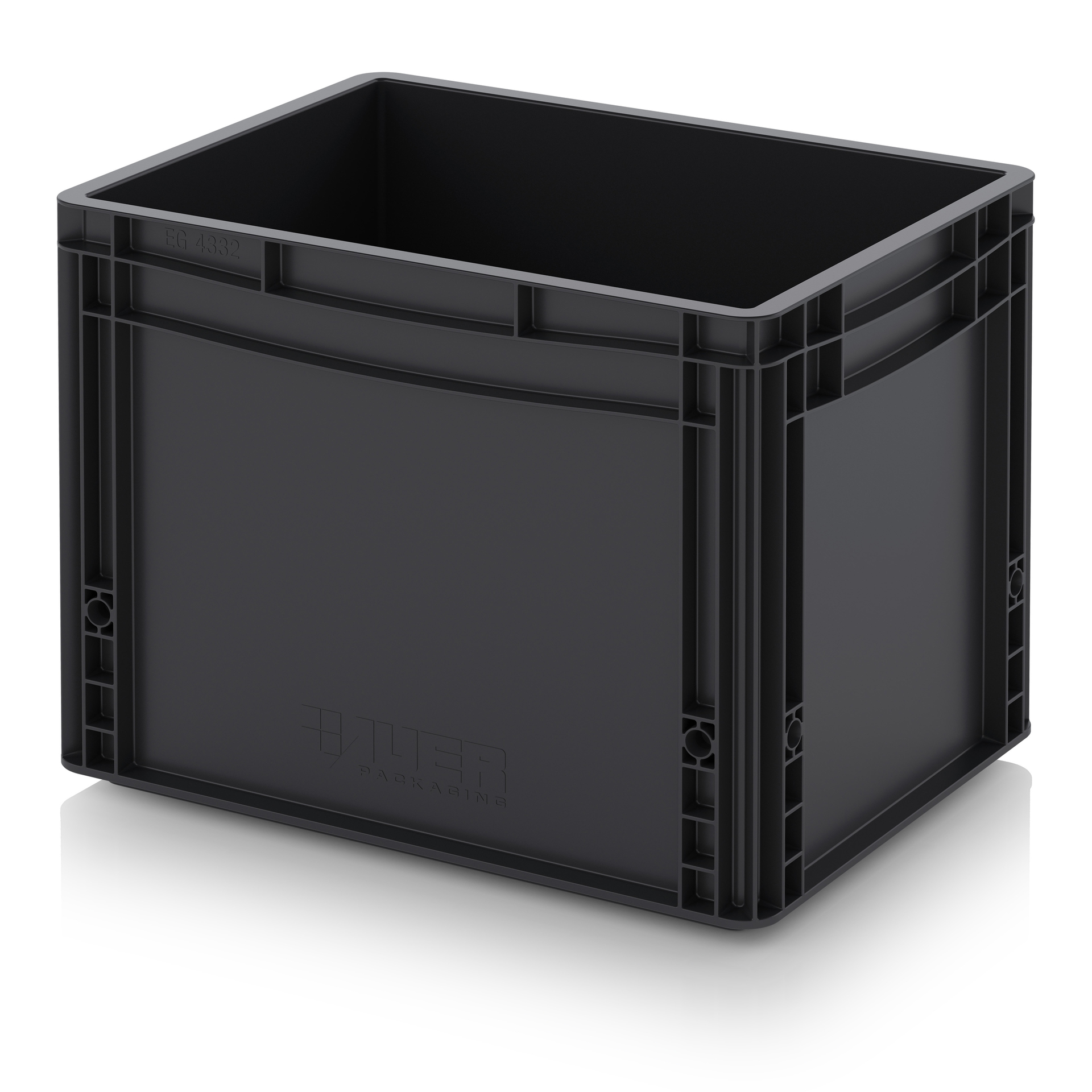 Евроконтейнер с ESD-защитой производства компании AUER Packaging изготавливается из антистатической пластмассы, что делает его пригодным, в частности, для надежного хранения и транспортировки электронной продукции.