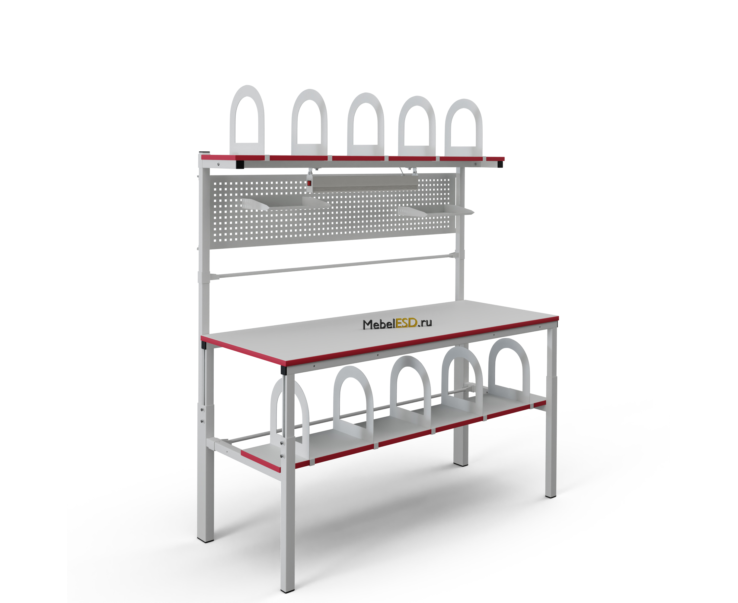 Функциональное расширение складского упаковочного стола, осуществляется с помощью дополнительного оснащения, начиная от типов покрытий столешницы, ограничителей, дополнительных держателей для рулонов (ДРВ, ДРБ), фиксатора рулонных материалов ФРМ, различных ящиков, боковых приставок стола (БПС, ПБ), заканчивая комплектом светодиодного освещения КОС.