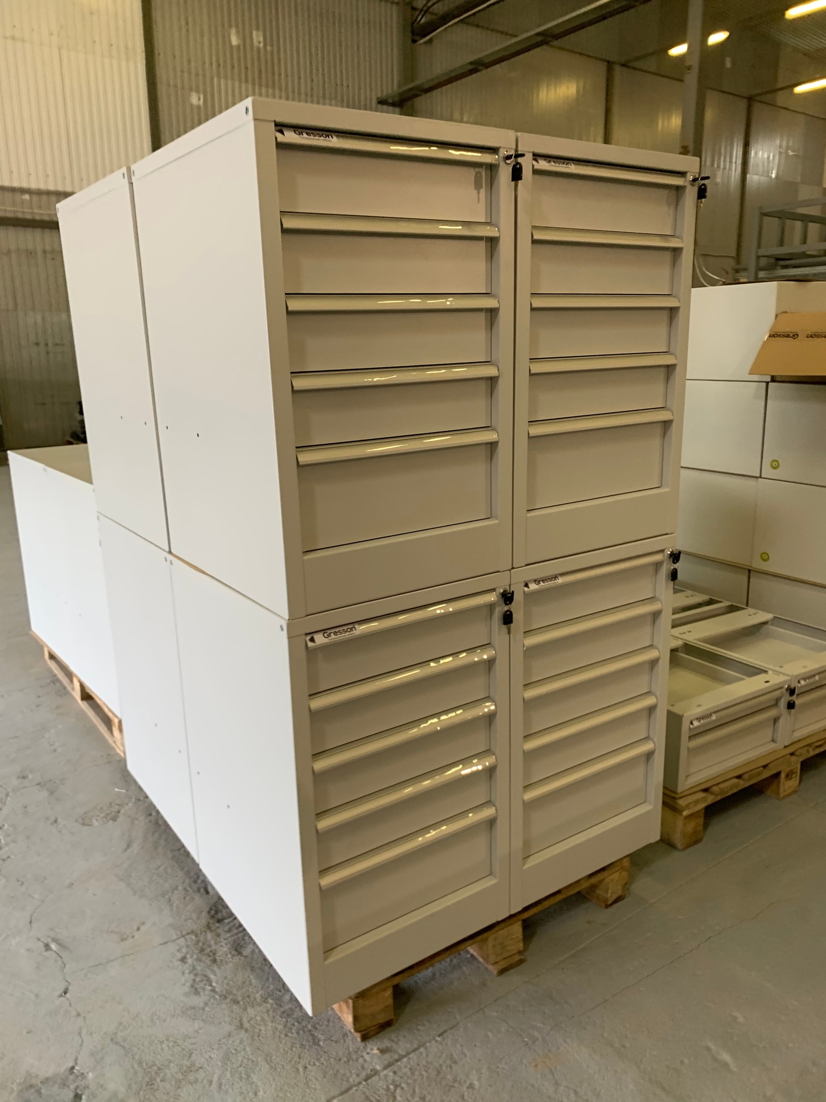 Стационарные металлические тумбы оборудованы центральным замком для индивидуального доступа. Каркас и ящики тумб изготовлены из листового металла для увеличения эксплуатационного ресурса и повышения надежности. Ручки тумбы изготовлены из алюминиевого профиля с анодированным покрытием и боковыми пазами, для установки обозначения (маркировки) ящиков по их прямому назначению (подразделение организации, документация, инструменты, материалы и т.д.).